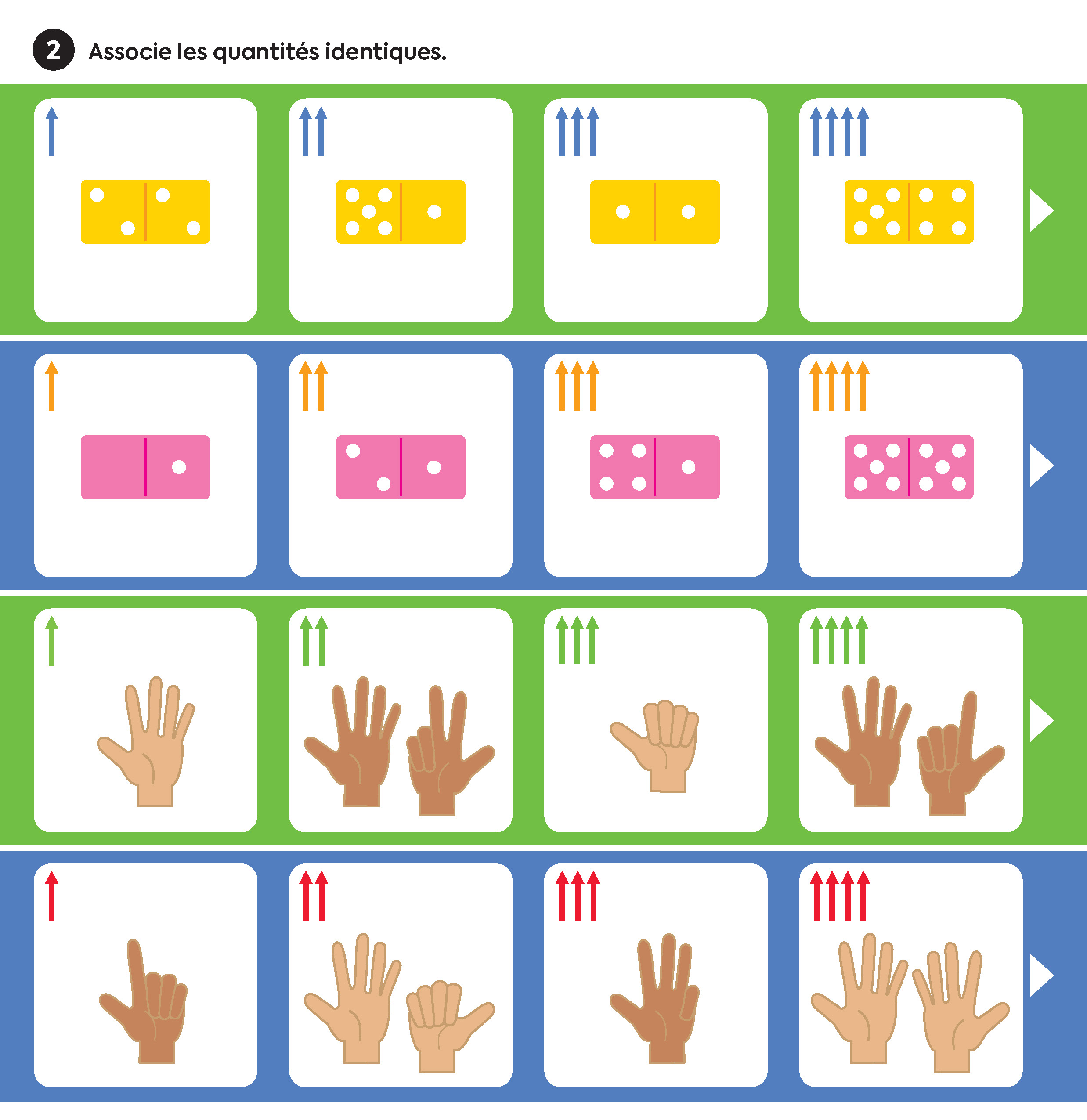 Dans cette série, l’enfant développe ses habiletés mathématiques de base, sur lesquelles s’appuieront ses apprentissages. Il s'exerce à reconnaitre, à ordonner et à comparer différentes représentations des quantités de 1 à 10.